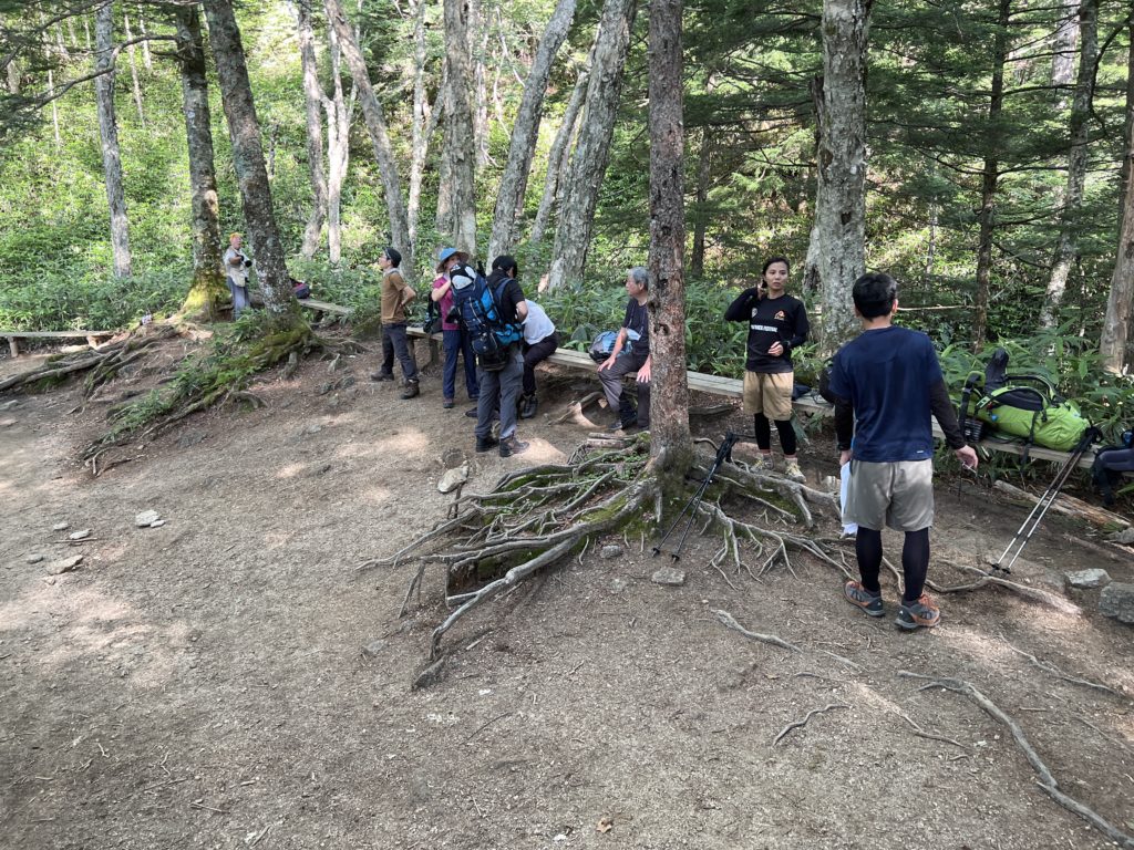 夏とはいえ、朝方は冷え込むので、ついつい厚着でスタートする人って多いと思いますが薄着で良いです。登山口から第一ベンチまでは急勾配のため、ストックを使用しながら登りましょう。