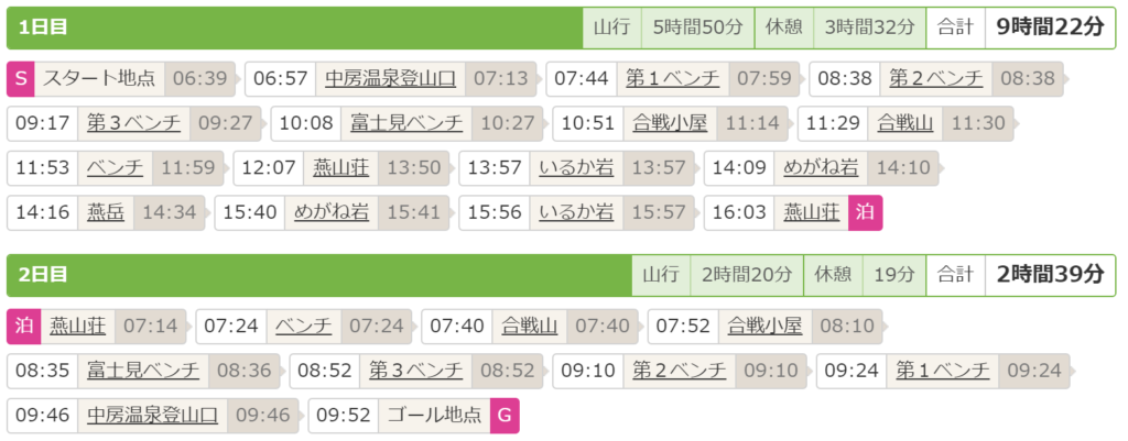 2022年8月に1泊2日で登山してきました。こちらがルートマップです。