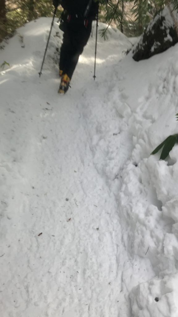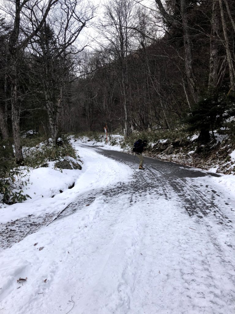 天候によっては路面が凍結しているため、後半は滑るたびにアイゼンつけようと思いました。
