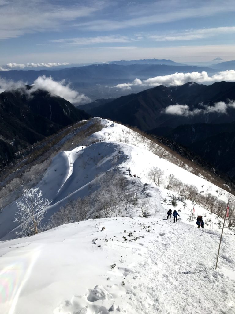 前日、降雪することもなく、先を行く登山者が多かったので、登山道が整備されており、スムーズに歩けました。(一度で良いからラッセル地獄を味わってみたい)