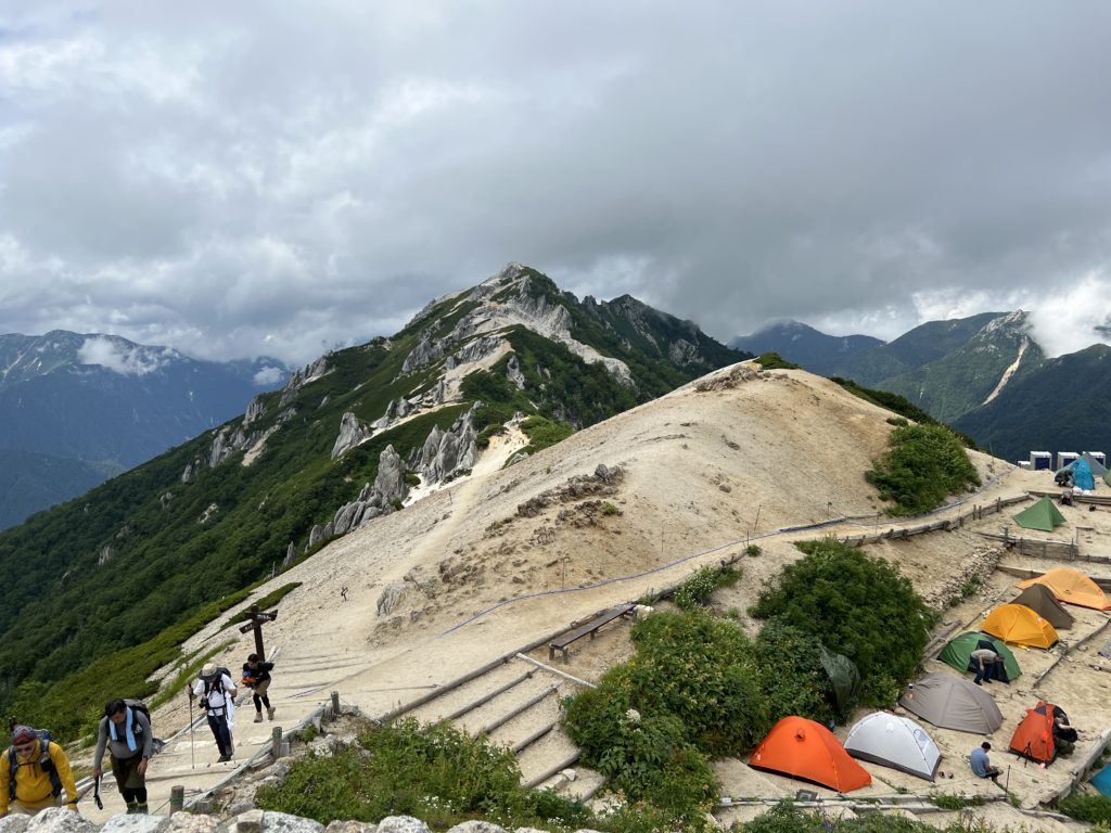 立派なテント場があります。運良ければ、風当たらず快適に過ごせます