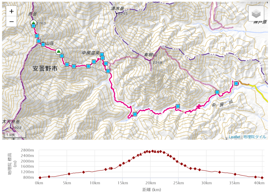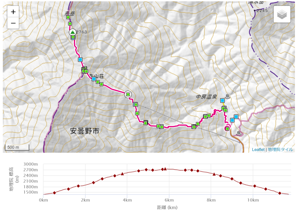 中房温泉登山口から往復登山した時の様子を夏と冬で比較してみました